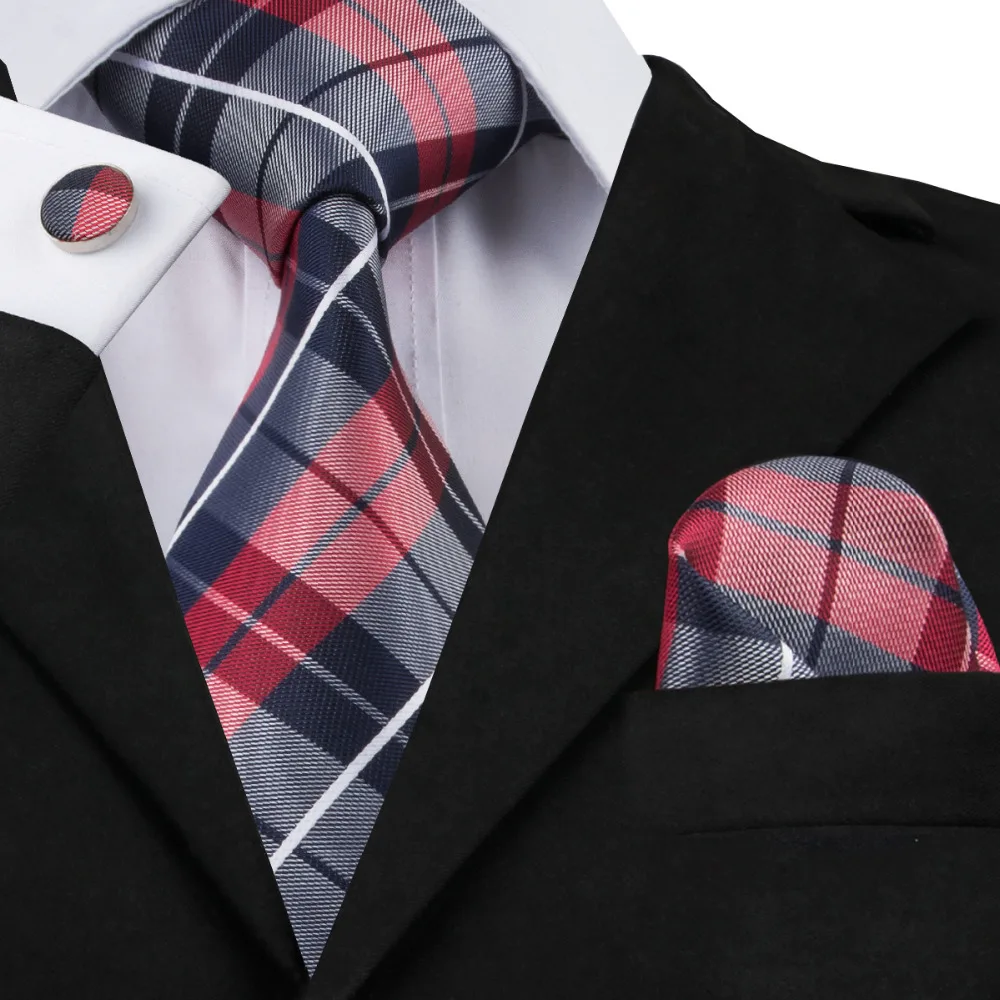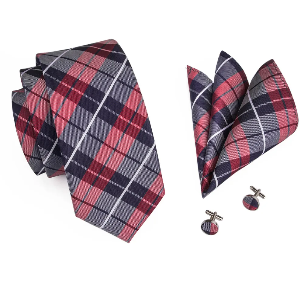 Buy SN-342 Dimgray Red White Plaid Tie Hanky Cufflinks Sets Men's 100% Silk Ties for men Formal Wedding Right Here and Right Now, Because before price is changed you will just pay for US $5.59, not in Reguler Price at US $6.99. Yap! This is I mean you will Save 20%